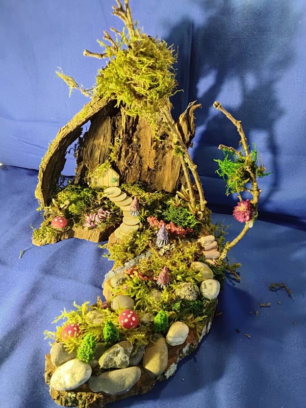Die Materialien sind fast alle in der Natur gesammelt worden und zu dieser kleinen Welt entstanden. Die kleinen Details wie das kleine Bächlein und die kleinen Büsche wurden von mir mit viel Liebe zusammengestellt.